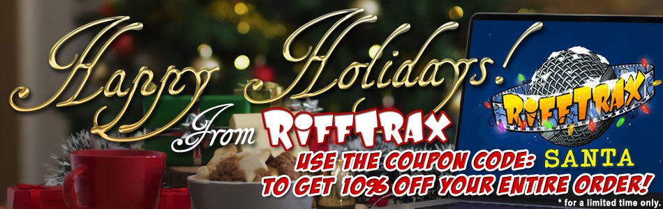 But as our RiffTrax gift to YOU this holiday season, we’re taking 10% off* riffs sitewide with coupon code SANTA at checkout. But don’t wait too long to unwrap this present: this deal is going up the chimney on December 25th at 11:59PM PT.